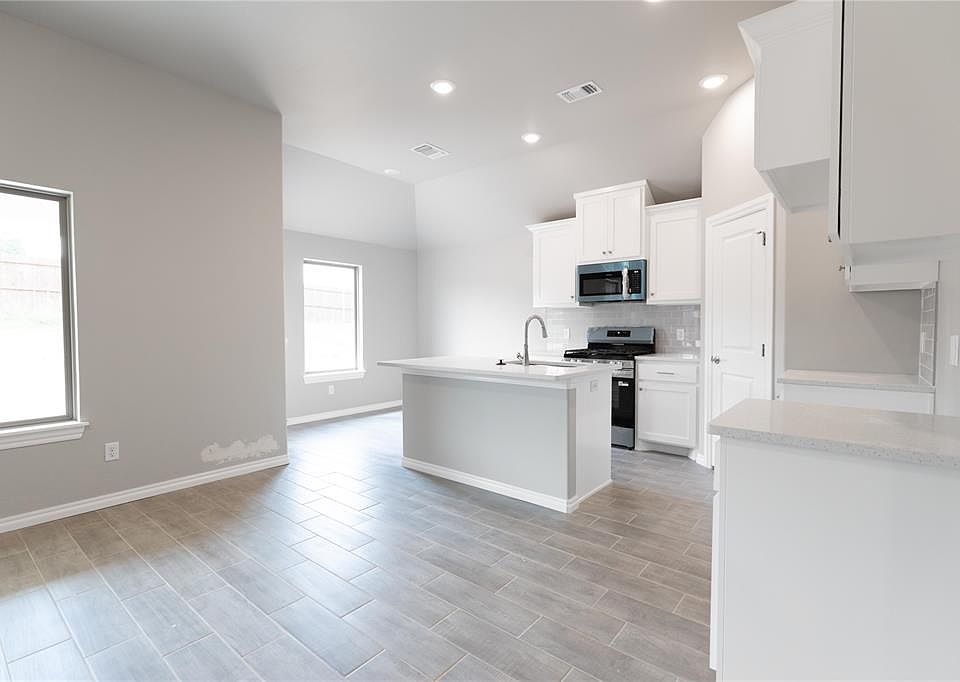 This Norma floor plan includes 1,425 Sqft of total living space, which includes 1,300 Sqft of indoor living and 125 Sqft of outdoor living space. There is also a 385 Sq Ft, two car garage with a storm shelter installed. This amazing and affordable home offers 3 bedrooms, 2 full bathrooms, 2 covered patios, and a utility room! The great room presents a 10-ft ceiling with large windows, wood-look tile, a ceiling fan, hand-textured walls, and Cat6 wiring. The spacious kitchen includes beautiful countertops, stainless-steel appliances, custom-built cabinets, wood-look tile, a large corner pantry, and a center island that holds a dishwasher and a roomy sink. The primary suite supports a high ceiling, lovely windows, a ceiling fan, Cat6 wiring, and our cozy carpet finish. The primary bath is attached and holds a dual sink vanity with an elegant countertop selection, satin nickel delta features, an elongated water saving toilet, and a spacious walk-in closet. Outdoor living includes fully sodded yards, a smart home irrigation system, and 30-yr weather wood shingles. Other amenities include a tankless water heater, R-15 insulation, a fresh air intake system, and so much MORE!