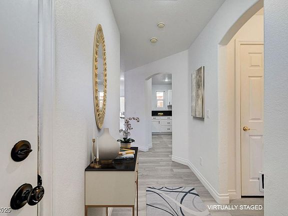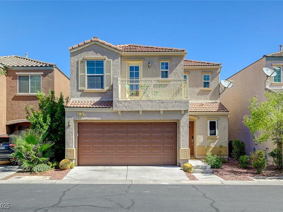 Begin your homeownership dream in this 3 Bedroom + Two Car Garage Home. Prime Southwest 89148 (IKEA, Costco, Durango Casino). The welcoming family room is the heart of the home, where lasting memories are made while cooking in a Modern, Updated Kitchen with newer cabinets, Sleek Granite Countertops, Stainless Steel Appliances, & Breakfast Peninsula. Graceful Arches and Luxury Plank flooring adorn the main floor with Brand New Carpet Upstairs. The Primary Bedroom upstairs has an En-Suite garden tub bathroom, Walk-In Closet w/ French doors to the balcony for fresh outdoor views. Low-Maintenance & drought-resistant cozy intimate backyard patio. Energy-efficient Central AC Averages $178 power bills. Live in a charming neighborhood tucked away from Warm Springs with a low $90 HOA, including Two Pools, Two Pet/Play Parks, 24 Hour Roving Safety/Security Patrol. Top Schools, Scenic Parks, Mountains, Dining, Designer Gyms, Groceries. Enjoy the lifestyle without the work in this lovely home.
