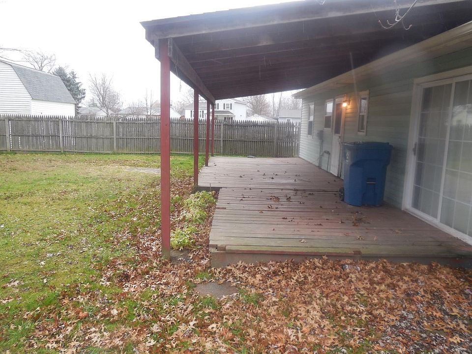 LARGE YARD, COVERED BACK DECK, HOOK UPS FOR WASHER AND DRYER. TANANT PAYS ALL UTILITIES, ELECTRIC, GAS, WATER, TRASH. MUST ALSO CUT GRASS ANG REMOVE SNOW.