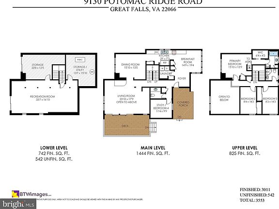 Welcome to 9130 Potomac Ridge Road in highly sought after Potomac Ridge Estates in Great Falls, Virginia. Discover the epitome of comfortable living in this thoughtfully updated home, nestled on a secluded and wooded 5-acre private setting. Boasting over 3000 finished square feet, this home offers a perfect blend of charm, comfort, and potential for expansion. This spacious home features 3 bedrooms, including a master suite, offering the perfect balance of privacy and togetherness. With 2.5 baths, including a recently renovated powder room and an upstairs hall bathroom, many details have been carefully crafted for modern living. Main level Study is perfect for working at home or to use as guest bedroom. Main level Family room filled with natural light and vaulted ceiling to upper level. Updated kitchen with windowed breakfast room adjacent to formal dining room.. Entertain with ease in the large lower level rec room with walk-out, perfect for gatherings and family activities. The ample lower level storage provides convenience and organizational solutions and options for additional finished space. This property not only offers a move-in-ready home, but also presents exciting expansion possibilities. Plans are available for a home addition and ample space for a future pool, providing the opportunity to customize and create your dream home. Alternatively, explore the option to tear down and build anew—an enticing prospect considering the comparable prices for lot/land deals in the vicinity. Land engineer drawings for septic up to 6 BR available under documents. Relish in the tranquility of the 5-acre wooded lot, creating a private oasis that feels worlds away from the hustle and bustle of northern Virginia. The lush surroundings provide the perfect backdrop for outdoor activities, relaxation and the potential realization of your vision for a dream home. Situated in the sought-after Great Falls community, this property offers the perfect balance of serenity and convenience. Enjoy the proximity to local amenities and easy access to major commuting routes, and both Regan National and Dulles Airports. Don't miss this opportunity to make 9130 Potomac Ridge Road your forever home!