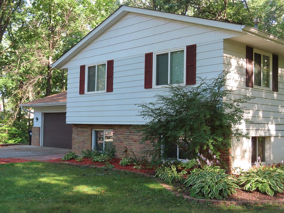 This home is in a great location - just a 3 minute drive from downtown Forest Lake. On quiet paved dead-end street. Full 1 acre wooded lot with lots of privacy and a playground out back. Inside are newly refinished hardwood floors and tile throughout. The upstairs bath was just renovated with a jetted tub and modern decor. Two good-sized bedrooms upstairs and a large master bedroom downstairs. The downstairs also has a fireplace and a walk-out to the backyard. Lots of storage throughout. Attached 2 car garage. Wide driveway for parking an extra vehicle. Lawn care is provided. Renter pays utilities. Full lease