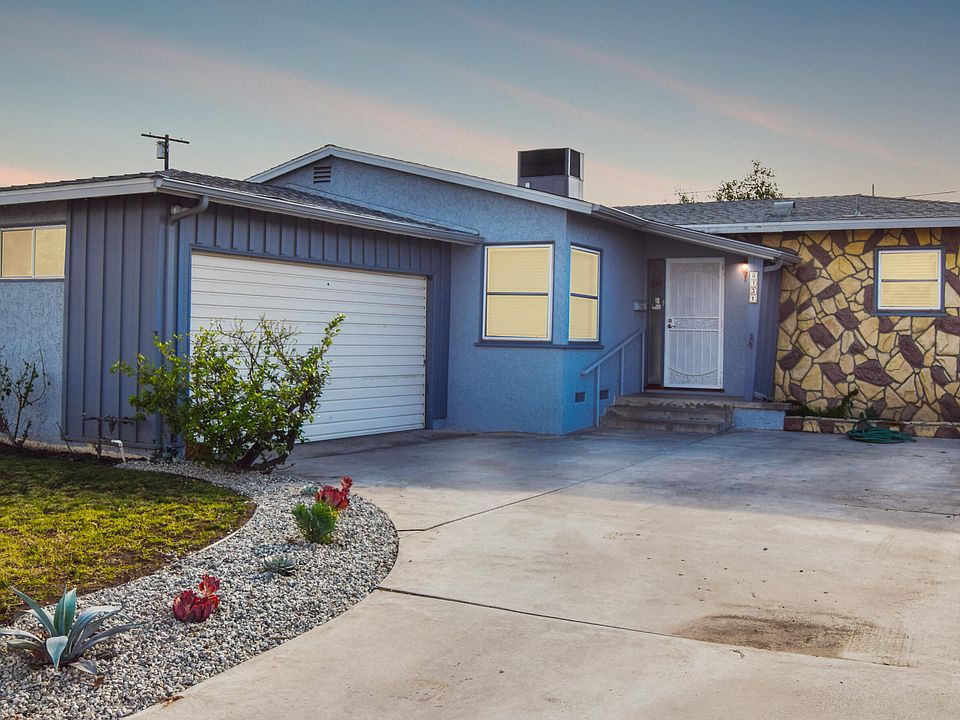Attractive single story home with 3 bedrooms and 1.5 baths with 2 car garage and private pool. Spacious living room and dining area with sliding glass door leading to rear yard covered patio area and pool. Kitchen comes with stainless steel appliances and ample cabinet space. 3 bedrooms and many ceiling fans that complement the central air conditioning system. Entire interior just repainted. Easy to care laminate flooring. An indoor laundry area off the kitchen and next to the powder room simplifies a basic common chore. Lots of natural light throughout and dual pane windows enhance the quiet atmosphere for peaceful enjoyment. There is a tankless water heater and the home comes with an outdoor BBQ. Conveniently located to shopping and freeway access. Great opportunity for a starter home, priced to sell and ready for immediate occupancy.