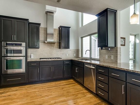 Must see contemporary home with new kitchen and bath granite as well as stainless steel appliances.. New extensive large windows bring light in and open up the home to the greenbelt with 2 upstairs patio areas and a downstairs pool, spa and patio, with covered cabana. Hardwood floors. Updated heating and air-conditioning as well as light fixtures. Open floor plan is perfect for entertaining. Centrally located off Midway and NW Hwy.