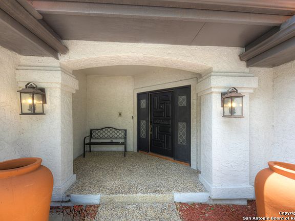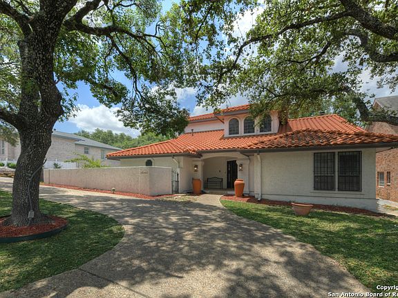 Discover this amazing and extraordinary split-level - three story Spanish style home, with a tile roof. This home is perfectly situated in a prime location near the Medical Center, UTSA, USAA, and other major employer's and convenient to the San Antonio Airport. Convenient to nearby shopping and restaurants with easy access to IH, Loop 410 and loop 1604 and Wurzbach PKWY. This is the ideal home for easy commutes. The first floor boasts stunning wood floors, and also features TWO Primary Suites. The second primary suite can double as an office, library or media room. There is a spacious living area which includes built-in book cases and a cozy fireplace. Additionally, there is a wet bar which flows into the formal dinning room. The kitchen is equipped with built in appliances, and breakfast nook, and distinctive Saltillo tile. Upstairs you'll find two additional bedrooms and a bonus room the can be used as an office. Downstairs is a basement, with additional bedroom. A two car, oversized garage with ample storage. This home combines a unique architectural design with convenient amenities. You'll love the blend of style and functionality this home provides. Now is the time to schedule a showing.