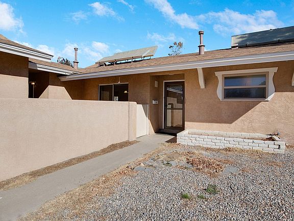 Fabulous corner lot with newly installed peach, plum, apple fruit trees and new shed purchased in 2020. Roof was installed in 2018. Solar panels are owned. Bonus room can be used as formal dining, office or bedroom! Elementary school and city park are close by, minutes to ABQ Uptown. Photos will be taken Thursday, March 4th. Square footage is approximate. Property being sold ''AS IS''.