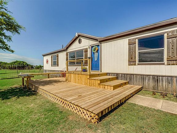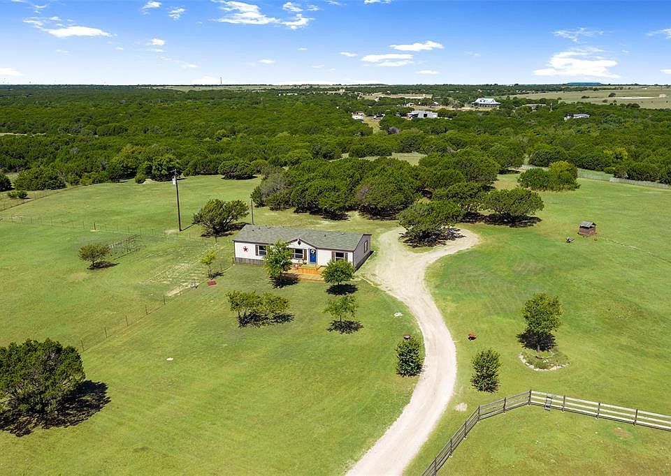 Quaint country home comfortably nestled on 13 acres of beautifully fenced, well maintained Texas countryside. This AG exempt ranchette features include private water well, gated entrance, aerobic septic system, and new front wood deck perfect for enjoying cool, fall mornings while drinking your morning coffee. The welcoming interior of this cozy home boasts with an open concept living space that flows into a galley kitchen featuring granite countertops, new cabinets, and sliding barn doors. The master bathroom provides a double vanity, garden corner bathtub, and custom wood ceiling. The guest bathroom has been fully updated with standup tile shower and new vanity. Welcome home to your cozy Texas Ranchette.