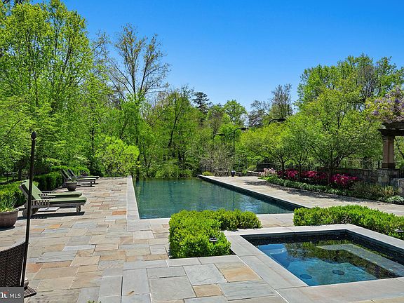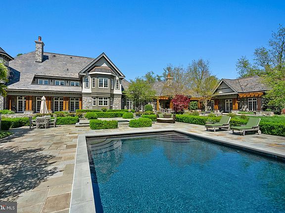This incredible 3.61 acre estate offers resort level amenities. Flagstone terraces surround the infinity pool and lead to lighted full size tennis court. The gated driveway winds uphill to the over 13,000 square feet field stone house custom built by BOWA. The six bedroom, six and a half bath home offers multiple venues throughout for entertaining small groups or large-scale receptions. The main floor includes a grand entry foyer of reclaimed barn wood leading to the formal living room with fireplace, formal dining room, office, family room and billiard room. The large open center island kitchen with breakfast room features heated honed granite floors and ample butler’s pantry. The first floor bedroom has ample light from the tall windows and ensuite bath. The second level includes a spacious landing, three bedroom suites with walk in closets and ensuite baths. The luxurious primary suite with a private balcony overlooking the pool, includes sitting area or office, elegant marble bathroom with a soaking tub, and his and her walk-in closets. The lower level includes a home theater that comfortably seats 16, a spacious recreation room and arcade center, bedroom, bathroom and a large storage room. The outdoor terrace includes multiple entertaining areas including a gazebo tennis viewing area covered in beautiful Wisteria, a firepit with surround seating and built-in grill with bar. A glittering oversized infinity pool and saltwater spa overlooks a field of wild flowers and is complete with an adjacent pool house with gym and full bathroom. Three car garage parking, a parking pad, and ample driveway parking. This stunning home is the ideal retreat just minutes from Tyson’s Corner and Reston.