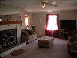 New concrete pad in front of garage and entire driveway has been recently blacktopped; brand new central air conditioning along with new living room carpet; great family home tucked back off of the road with excellent views; family room or playroom that looks out over the yard; stocked pond for leisure fishing and for the hobbiest or car buff a30x30 garage with concrete floor, full electric, vinyl sided with one manual overhead door.