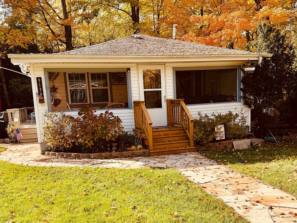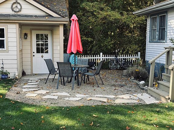 A six minute walk for me, a senior citizen (guestimated .2 mile) from your front door to the edge of an Association owned beach that is 180' deep measured from the edge of the water to the bottom of the steps this year. Charming traditional cottage with , some new windows. Rooms and more rooms as it was duplex at one time. Parking for 2 cars outside the yard, 3 cars if you are careful to use all the space. Last house in the neighborhood sold for 650. Matterport and Aerial Walk to the beach available upon request.