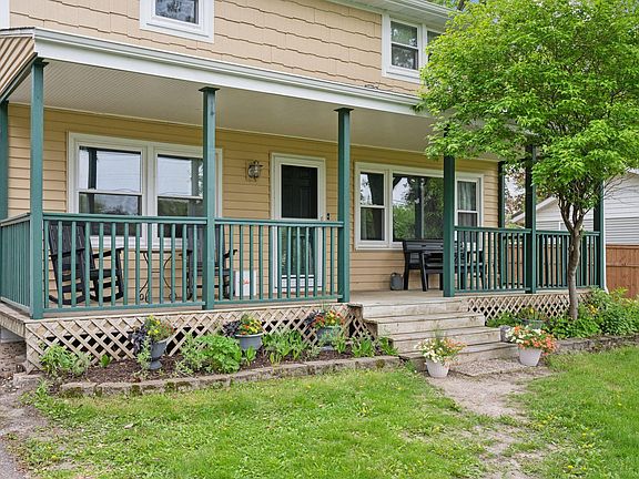 Watch evening sunsets from your storybook front porch! Traditional two-story home with loads of improvements in the last decade. Large living/family room, separate dining room, and convenient main floor half bath. Terrific, fully remodeled kitchen features stainless steel appliances, quartz countertops, lighted cabinets to highlight dishware plus pantry storage with pullouts. Luxury vinyl plank and tile floors installed on the main floor. Upstairs features the original hardwood floors and three nice-sized bedrooms. Walk-in closet on the hallway is great storage/dressing space. Spacious upper full bath with linen closet. Attached heated garage. Unfinished basement for hobbies & storage. Vinyl / shakes siding, newer windows, furnace. Whole house Kinetico filter system, Nest items will stay w/home. Beautiful .36 acre lot - treed, flat yard with plenty of room to play. Space to expand, or just enjoy this sweet home as it is. Close to parks, lakes, trails, shopping, amenities, more!