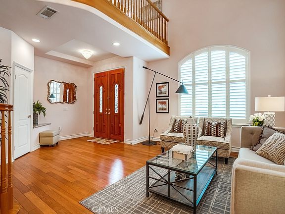 The custom-designed outdoor patio is perfect for relaxation. The property includes an attached two-car garage and two assigned parking spaces. Built in 2005 as a newer PUD within the Temple City School area, this home showcases quality craftsmanship and elegant touches throughout.