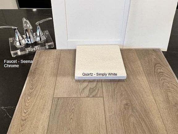 4 Bedroom 3 Baths with loft, One bedroom with bath downstairs. 9' Ceilings downstairs, upgraded 42" White Cabinets with Calacatta Quartz kitchen countertops.Toasted Taupe Luxury Vinyl Planking downstairs. Enlarged shower with seat with Quartz surrounds in Primary Bath. All on an oversized lot.