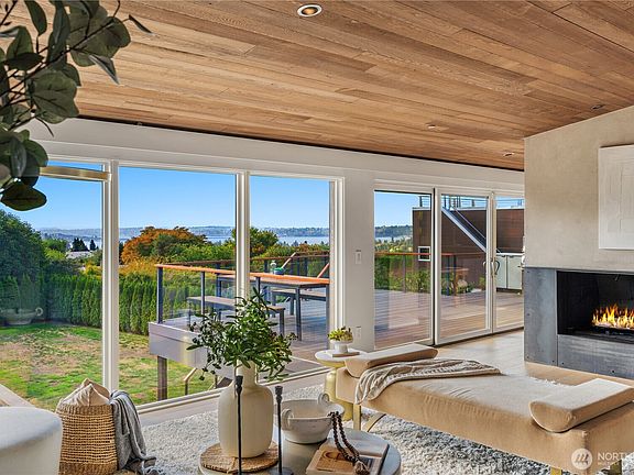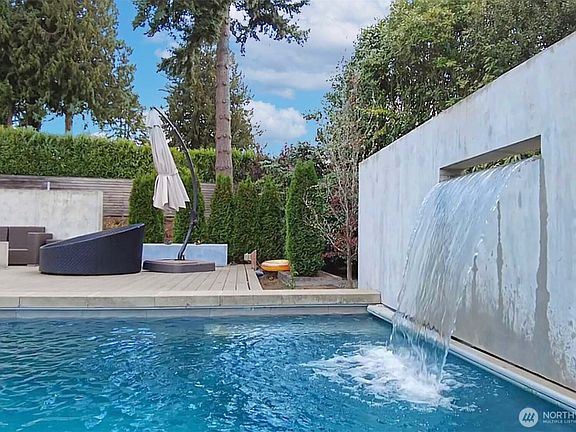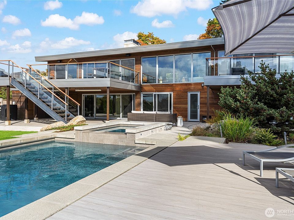 Experience timeless sophistication in this reimagined mid-century masterpiece by Garret Cord Werner, set in the coveted Mercia enclave of Clyde Hill with sweeping views of Lake Washington and DT Seattle. A studs-out renovation fuses iconic design with modern luxury, featuring floor-to-ceiling windows and new engineered hardwood flooring on the main. Private primary wing boasts a fireplace, dual walk-in closets, a spa-inspired 5-piece bath with steam shower, and a private balcony. Additional highlights include a separate office, media room, Miele equipped Kitchen and Control4 whole-home system. Outdoors, enjoy a south-facing backyard with custom modern 17' pool w/waterfall, spa & sport court in lush landscaping. Zoned for Medina Elementary.