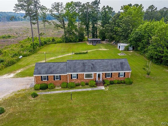 Brick rancher on a private 1.7 acres!!! When arriving you will notice the huge front and rear yard with plenty of room for additional buildings or pool in the future. The home has a two car attached garage as well as one car detached metal garage. There is also a large dog pen area with concrete slab, water, power, and roof. Entering the front of the home you will find a large living room with front facing picture window. Their is a den or second tv room that has an entrance to the attached garage. The laundry/mud room also has an entrance to the rear yard for everyday in and out traffic. The kitchen has hardwood cabinets, laminate countertops, all electric appliances, pantry, and space for a kitchen table. Down the center hall you will find the primary bedroom with hardwood floors and en suite bath with stand up tile shower. The other two bedrooms both have hardwood floors and share a hall bath with tile tub/shower combo. The home has a newer heat pump, roof, and has a whole house generator for when the power goes out. This home is in amazing shape for its age and has been very well taken care of!!