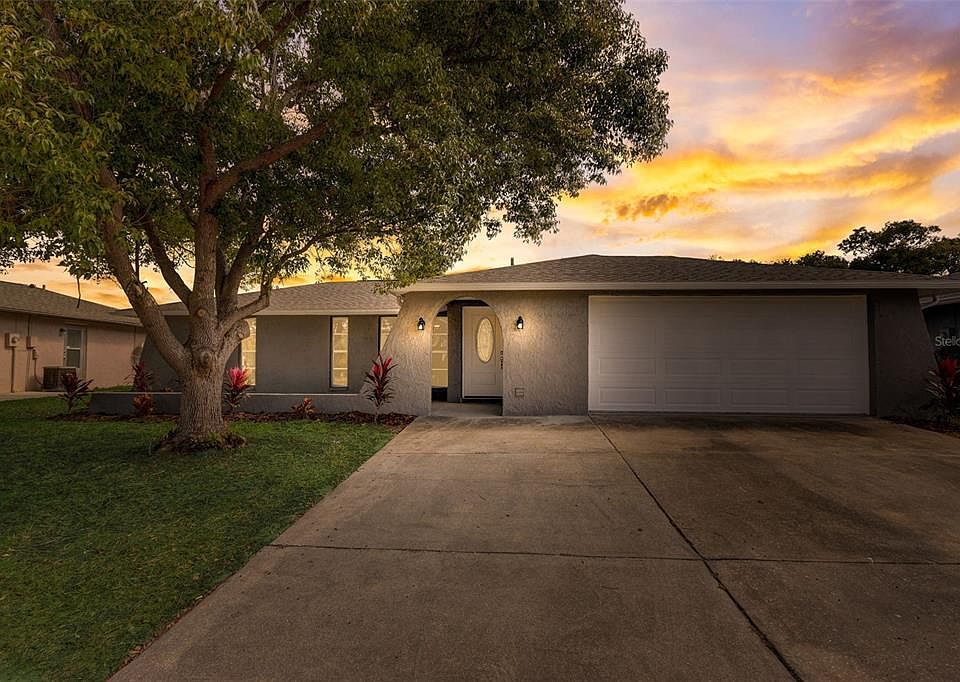 One or more photo(s) has been virtually staged. Welcome to your remarkable 3-bedroom, 2-bathroom, 2-car garage home nestled in the heart of Jasmine Estates. This meticulously renovated haven boasts a brand-new roof and comes with the added bonus of NO HOA or CDD fees, providing you with both comfort and freedom. As you step inside, you'll be immediately captivated by the spacious layout and the thoughtfully designed split floor plan, creating a harmonious flow throughout the home. The heart of this residence, the kitchen, has been tastefully updated with modern finishes and gleaming stainless steel appliances, offering a haven for aspiring chefs and culinary enthusiasts. The generously sized dining and family rooms seamlessly blend together, providing the perfect setting for relaxation and family gatherings. Retreat to your primary bedroom, a generously sized haven complete with a large walk-in closet and a well-appointed bathroom. The secondary bedrooms are equally spacious, bathed in natural light, and conveniently located near the updated bathroom. The Florida room, a versatile space with endless possibilities – whether you choose to relax, work out, or entertain, it's yours to decide. It opens up to the fully fenced-in backyard, offering plenty of room to enjoy the outdoors in privacy. The opportunity to make this home your own is knocking at your door. Located centrally in Port Richey, you'll enjoy close proximity to shopping, dining, and entertainment. With easy access to US 19 and downtown New Port Richey, convenience is at your fingertips. Don't miss this golden opportunity. Schedule your showing today!