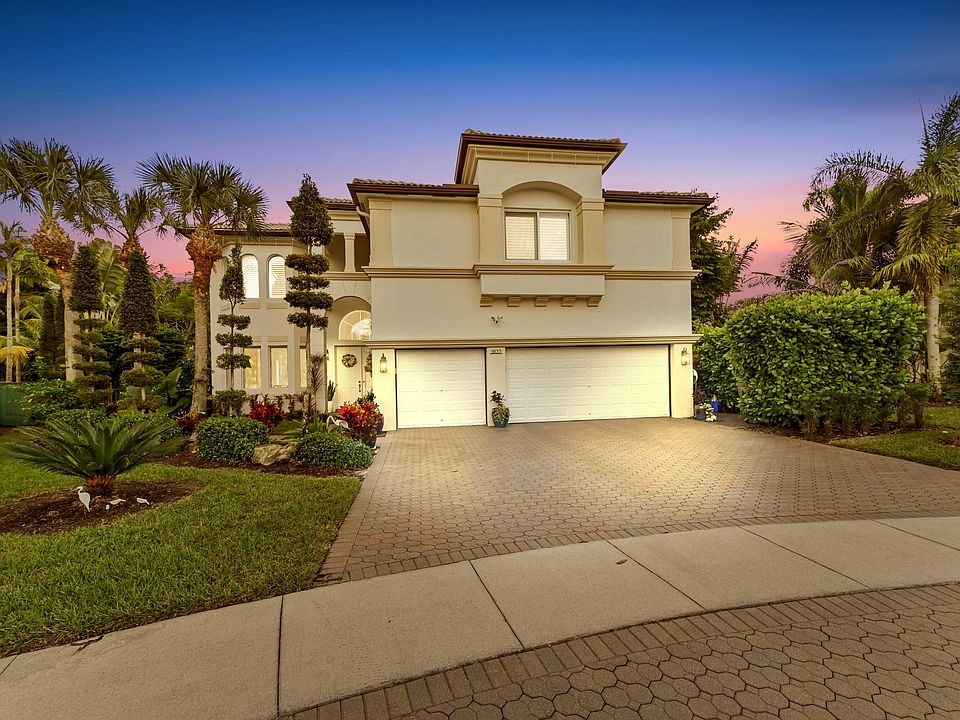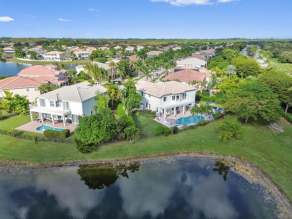 Prepare to be swept away by this magnificent estate, fully remodeled Sienna Grande home by Minto, perfectly situated on a large premium Cul-De-Sac, lakefront lot within Wellington's coveted resort-style community of Olympia. This exquisite 6-bedroom, 4-bathroom residence is designed for the most discerning buyer, boasting a spectacular interior with premium grade custom-designed flooring throughout and gorgeous curved staircase with wrought iron balustrades and oak handrails. The main floor is a masterpiece of design. The gourmet kitchen is truly inspiring, featuring a breathtaking marble island, countertops, and backsplash. It is equipped with top-tier appliances, including double ovens, a cooktop stove, and a refrigerator, complemented by a pantry. The adjacent family room offers a stunning focal point with its custom laid quartzite accent wall, beautifully enhancing the decor. The entire pool deck has been updated with travertine tiles & pre-wired with speakers ensuring the perfect ambiance for any occasion when entertaining guests in the backyard.