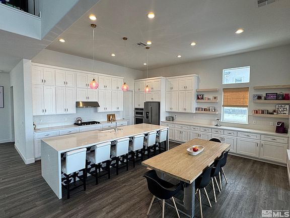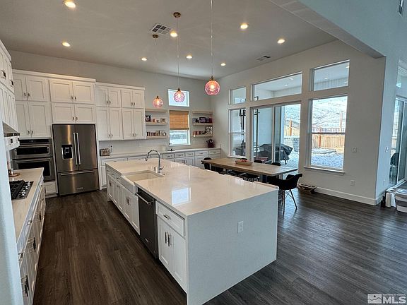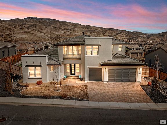 This two-story home features four bedrooms and multiple living spaces, designed for both comfort and functionality. A guest suite is located at the front of the home, providing added privacy for visitors. The master bedroom includes an upgraded fireplace. The updated kitchen features a modern tile backsplash and plenty of room to host parties or bake holiday treats. Vaulted ceilings on the first level add to the home’s open feel, with large windows offering stunning views of wildlife and Peavine Mountain., The owners have loved watching California Condors come and go from spring until fall, leaving in the morning and returning in the evening. The open floor plan and white walls have been a blank slate for creativity, especially when decorating for the holidays. The four-bedroom layout has been more useful than expected, providing ample space for both everyday living and special gatherings. The fireplace has been a beautiful centerpiece of the home, especially when decorated for Christmas. The fully landscaped backyard is a peaceful retreat, perfect for soaking in the sun and enjoying the breeze in the mid-morning or evening. This home blends comfort, space, and breathtaking views, making it a truly special place to live. Some rooms have been virtually staged.