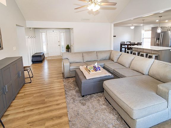 Welcome to your dream home! This updated, full brick, all on one level home offers effortless living with a spacious open concept design, perfect for entertaining. The heart of the home is the large living room that seamlessly flows into the kitchen and flex area with direct access to the fully fenced yard. Off the kitchen you will find an extra room perfect for a play room, home office or a potential 4th bedroom! The primary suite is an actual full suite; complete with its own en suite bath, large walk in closet and extra workout/sitting/office area. Freshly painted throughout with updated flooring, kitchen and baths, this home is move-in ready with a yard barn for extra storage and 2 car attached garage.