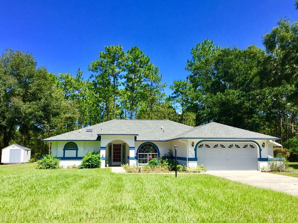 Are you looking for a peaceful, quiet setting? This is a custom built, one owner 3/2/2 wheelchair ready home. When you pull up to this home you feel the tranquility with a large 1 acre lot, no neighbors to the left or the back. Walking in the front door you see a large entry area connected to the open living room with vaulted ceilings, a triple slider leads you out to the lanai. There is a formal dining area to the right, down the hall to the eat in kitchen, the indoor laundry with wash tub, two guest rooms, main bathroom is set up with a walk in shower. To the left of the house is the large master bedroom with French doors leading out to the large lanai and a walk in closet. Master bath with 2 sinks, a walk in shower and a tub/ shower combo.