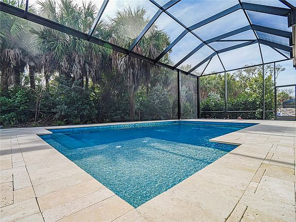 Newly built, never lived in pool home! 3/3/3 + den. Best price for single family home in luxury beachside community of Seaglass, nestled among winding boardwalks lined with native oak & palm trees. Beach Club membership included; clubhouse, fitness room, outdoor patio & private beach. Porcelain tile floors, crown molding, built-in bar/wine fridge, chefs kitchen with gas stove, private security system, surround-sound speakers, custom-designed master closet, heated saltwater pool with covered patio, screen enclosure, gas grill hook-up. 3-car air-conditioned Garage has epoxy floor & storage.