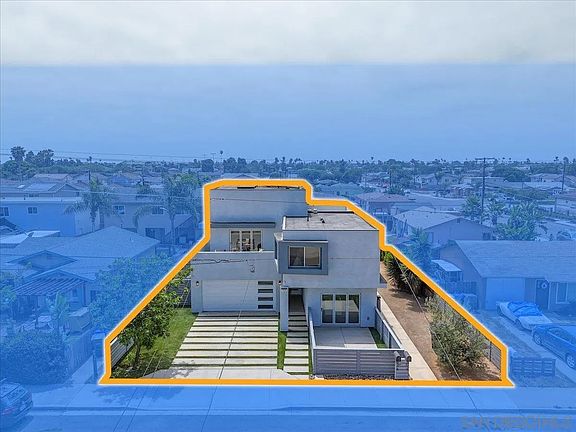Modern coastal living in the heart of Imperial Beach. Welcome to 914 10th St., a 2021-built architectural gem offering 4 bedrooms plus a third-floor loft (optional 5th bedroom or office) and 3 full bathrooms across 2,244 sq ft. Designed for both comfort and style, this home features an open-concept layout with an oversized island, quartz countertops, stainless steel appliances, vaulted ceilings, solar skylights, and custom lighting. Tri-fold accordion doors open to a private fenced patio, perfect for entertaining. Two spacious primary suites offer flexibility in one on the entry level with ensuite and yard access, the other upstairs with a walk-in closet, private deck, and spa-style bath. Additional bedrooms share a Jack-and-Jill bath. Upgrades include dual-zone AC and heat with Nest thermostats, tankless water heater, EV charging readiness, Ring security, and Culligan water filtration. Enjoy a large private driveway, fenced side yard, and low-maintenance artificial turf. Rooftop deck offers peekaboo views of downtown San Diego, the bay, Tijuana, and Coronado Islands. No shared walls. Home is considered a detached cloud condo with no HOA or fees. Walk or bike to shops, bars, cafes, and the beach, with easy access to Naval bases and downtown San Diego. This modern beach home of this size is a rare find. Best Value Beachside!