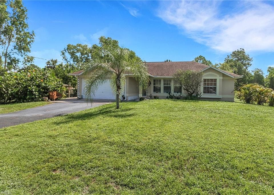 Great Location with Plenty of Space! This property features 3 bedrooms, 3 bathrooms, and sits on 1.59 acres in a prime Naples location. Enjoy a screened-in pool, outdoor BBQ/fire pit area, and a cleared backyard with numerous mature fruit trees. The home offers dual driveways with front and rear access, plus a carport for storage or parking—perfect for trucks, RVs, animals, and more.Inside, you’ll find a tiled interior throughout and many recent upgrades, including a 2018 roof, AC system, appliances andelectrical panel. Best of all, the property is not in a flood zone, move in ready and is only minutes from schools, restaurants, and the beaches. This is Florida living with space, privacy, and convenience all in one!