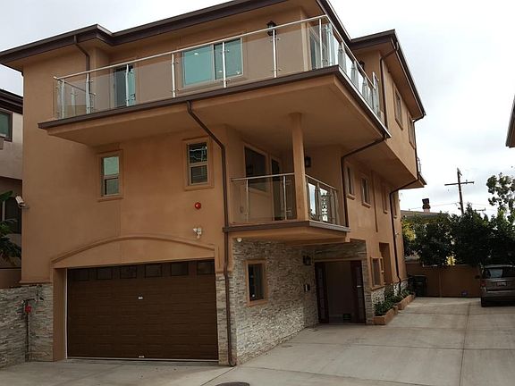 Modern townhome with stunning ocean views in east Hermosa. Three stories with 3-stop elevator. First bedroom/full bath on first floor, laundry room too. Second floor is the main entrance, 2 bedrooms with own full baths, walk-in closets, ocean-view balcony. Living area and kitchen on third floor with stunning ocean views. Kitchen complete with Thermador appliances, stone flooring. Dining room boasts its own private ocean-view deck. The 4th bath up here too as is a walk-in pantry. Other features include central A/C, tankless water heater, guest parking, and no overhead wires. Four blocks to Mira Costa High. Short stroll to Vons, Trader Joes, downtown Hermosa Beach. Owner pays for gardening service. Photos show staged, home is unfurnished.