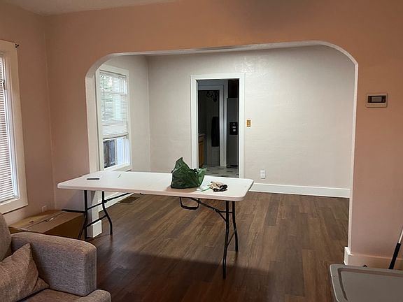 Unfurnished house with 2 Bedroom/ 1 Bath on main level, with 3 additional finished rooms in full basement. Comfortable home with Living room, Dining room, 2 Bedrooms, and Bathroom (at entry level) New tile, and vanity in bath. New flooring throughout main level of house. Kitchen has New stainless refrigerator with butcher block countertops and stainless steel sink. House is located on three lots with huge fenced back yard. No Smoking or Vaping inside home, and Pets OK (with Landlord approval and additional deposit, Tenant pays all utilities except trash provided. 12 month lease, deposit is one month's rent.