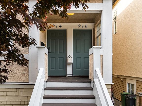 NEW LISTING! Vic West’s Most Desirable Area! Fully renovated legal duplex + 1-bed suite w fantastic revenue potential. Three suites: #914 main suite w 3 bed, 2 full bath, ~9 ft ceilings; den, laundry, +1 bed suite w its sep entrance. New laminate & tile flrs, white paint w black accents, custom lighting, waffle up/down blinds. Main kitchen w custom black walnut cabinetry, stone counter, under-mount sink, built-in gas range. Main bath w radiant flrs & designer fixtures. #916 unit adds strong income potential: 3 beds, bath, kitchen, living rm + laundry, newer flrs. MAJOR UPDATES: new water main, perimeter drain, sump pump 2017; windows; gas; hot water on demand; sheared walls/sides; roof 12 yrs; dual hydro meters. Professionally landscaped, drought proof & mow-free yard by Fi Campbell. Deck, fenced & gated yard, shed/studio, fire pit, lounge & dining area, storage under deck. Immediate access to parks, waterfront walkways, Galloping Goose Trail. Fry’s Bakery & Market Garden. See Brochure
