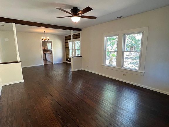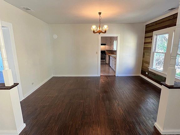 Formal dining roomOriginal wood floorsTile floorsBeautiful original wood floorsTile backsplashFans for comfortEfficient kitchen