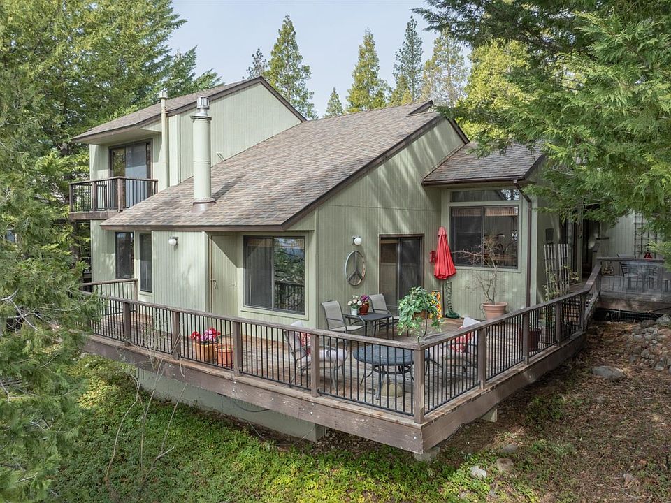Location, canyon views AND recent price improvement! Beautiful 3 bedroom/2 bath 1422sf architecturally appealing mountain home located in the gated community of Forest Meadows (just minutes from downtown Murphys, wineries and golf...or a short drive to skiing, boating or Big Trees State Park). Main level includes: Front porch with ski storage locker, kitchen, dining room, sunken living room, bedroom (optional 2nd primary) with a full bathroom, single detached garage with workshop and golf cart garage. Upper levels include: Second bedroom and a primary bedroom with a full bathroom. Features: Stanislaus Valley Canyon views, close to Hilltop park amenities, level driveway, vaulted knotty pine ceilings, central heat & air, propane fireplace and various outdoor spaces for enjoying the views and entertaining. Updates: Roof 2020, HVAC 2017, exterior paint and bathrooms updated 2014.Sellers to provide Buyers with a $10,000 credit toward closing costs. Community amenities include: buried utilities, public water/sewer, security gate/patrols, snow removal of main roads, clubhouse, two parks with BBQ/picnic areas, pools, tennis/pickleball/basketball/bocce courts, playgrounds, dog park, hiking trails, organized activities and so much more.