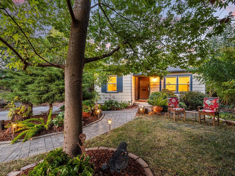 Life slows down on D Street, where shady trees and timeless homes shape one of Davis's most beloved enclaves. This two-bedroom, two-bath 1940s bungalow welcomes you with a colorful front yard of curated plants, a sitting area beneath a Japanese maple, and a winding paverstone pathway to the front door. Inside, oak floors flow through the cheerful family room and classic dining room featuring wainscoting, two-tone paint, and a charming candelabra-style chandelier. The kitchen keeps its roots with 1940s tile, butcher block counters, and a built-in spice niche. The two bedrooms include a primary suite with a dedicated mini-split, private bath, and slider to the deck. The hall bath has a pedestal sink, sconce lighting, shutters, and a tiled walk-in shower. The indoor laundry also adds ease. Out back, mature trees create a shaded microclimate where ferns thrive and summer runs cooler. A deck with trellis and a brick patio extend entertaining space, while an outbuilding with tall ceilings, antique windows, and loft storage makes an inspiring studio. You'll love the new Milgard windows, mini-splits, and carriage-style garage door. At 914 D Street you'll find not just a home, but a welcoming neighborhoodblocks from the Co-Op, Central Park, downtown cafs, and UC Davis.
