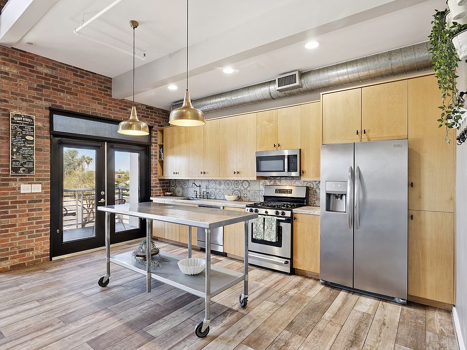 Spacious condo in the beautiful community of Artisan Lofts located in midtown Phoenix across the street from the Phoenix Country Club. This unit has stainless steel appliances, full sized washer and dryer, stone countertops throughout, upgraded lighting, motorized window shades with amazing views. Completely remodeled bathrooms with a giant copper tub overlooking the city. Exposed brick though out the unit with vaulted ceilings. Private balcony off the kitchen overlooking the city. Custom primary closet with tons of storage/space. The building is fully secured and requires a code for entry. The community offers a gym, pool, rooftop terrace with bbq and fully secure gated attached parking garage. This unit includes 2 parking spots in the attached gated parking garage. Tons of walkability walk across the street to Starbucks, Taco Guild, and Gadzooks :)