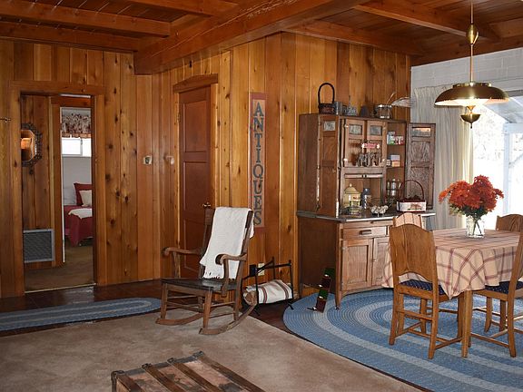 Single story Charmer just steps to the village!! Lots to love with this 2 bed 1 bath blast from the past, including a small attached garage , large level lot and easy access no matter the season. Your Dutch Door entry opens to the charming living room with open beam construction and knotty pine tongue and groove on the ceilings. A rustic fireplace with built ins and original mantle are the centerpiece of the home! The dining area features a large slider to the backyard and open beam features as well. The kitchen is cute as a button-Gingerbread abounds and original knotty pine cabinets accent the built ins and wine glass racks that were part of the original design. Down the hall to the 2 spacious bedrooms which share a cool wall to wall, Jack and Jill closet and have plenty of room for any size bed and accompanying furniture. The full bathroom is just steps away. The backyard is like a park. Great views to Wrightwood's snow covered Blue Ridge Range and peaks to the South. Paved driveway and close to town and all it has to offer.