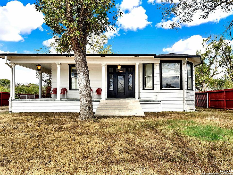 1940's dreamy historic beauty on a corner RIVER LOT in the heart of Castroville, TX!! Situated on 1.64 acres this craftsman style home with a wraparound porch has over 1700 square ft of living space with 3 bedrooms and 2 bathrooms. The sloping yard leads directly to the river front with gorgeous cypress trees and views. The interior has been completely remodeled while keeping the historic flare with the wood floors, lighting and architectural features. Enjoy high ceilings, granite countertops, a large laundry room and plenty of storage! This home was originally located in the countryside & was then moved to its present location and repositioned with the front door and porch facing the river so the owners would be able to enjoy the river front view while relaxing on the porches. The enclosed yard with new fence and cross fencing is great for security and animals as well as the additional dog run! Fresh paint, bathroom tile, foundation leveling with concrete pier and beams, and tree trimming are just few of the additional recent improvements! This is a must see!