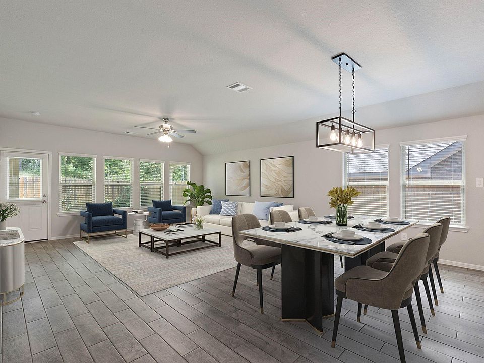 Come fall in love with this immaculate home & amazing floorplan! Upon entry, you are greeted with beautiful wood-like tile that flows througout the main areas!You will notice plenty of windows giving great natural light! The oversized living room give endless design options! The kitchen has a reverse osmosis system, walk-in pantry, & motion sensor under cabinet lighting! You will love the stunning 8 ft. long granite top island! The primary suite overlooks your peaceful backyard & offers a soaking tub, & giant walk-in closet with built-in shelves! The front bedrooms has it's own private en-suite bathroom too! This could make a personal office or guest suite! Every bedroom is a great size with a generous closet! Plus a WHOLE HOME water softener, full gutters, extra long covered patio & NO BACK NEIGHBORS! You are estimated 4 miles to I-45, 2 miles from HEB & 4 miles to Lake Conroe! The Community offers a fishing pier, tennis courts, walking paths & park! FRIDGE WASHER & DRYER INCLUDED!