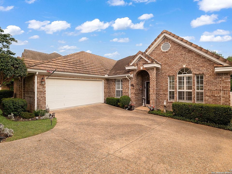 Step into elegance in this beautifully maintained one-story home, tucked inside the gated community of The Meadows at Sonterra. From the moment you arrive, you'll notice the combination of timeless design, mature trees, and neighborhood charm that make this property stand out. Inside, soaring ceilings, abundant natural light, and carefully chosen finishes create a warm, inviting atmosphere. The open floor plan offers flexibility with multiple living and dining areas designed for both relaxation and entertaining. The spacious family room is anchored by a granite-accented fireplace, seamlessly connecting to the island kitchen. Here you'll find granite countertops, breakfast bar seating, and quality appliances that make preparing meals or hosting gatherings effortless. A formal dining space and breakfast nook add to the home's versatility, providing the perfect setting for everything from casual coffee mornings to holiday celebrations. The split owner's retreat is a private haven, complete with a spa-inspired bath featuring a double vanity, garden tub, and separate shower. A generous walk-in closet provides ample storage and convenience. Three secondary bedrooms offer comfort for family, guests, or even a dedicated office or workout space. Additional highlights include custom blinds, ceiling fans, and a thoughtfully designed utility room. Outdoors, a covered patio extends your living space into a backyard framed by a privacy fence, mature trees, and a sprinkler system that keeps the landscaping lush with minimal effort. Whether enjoying a quiet evening or hosting friends, this yard offers both beauty and function. The Meadows at Sonterra is part of the highly regarded NEISD, feeding into Stone Oak Elementary, Barbara Bush Middle School, and Ronald Reagan High School. The community's gated entrance and Stone Oak location place you just minutes from premier dining, shopping, golf, and medical facilities. With quick access to Loop 1604, Highway 281, and IH-10, the best of San Antonio is right at your doorstep. This residence blends comfort, style, and location into one exceptional package. Don't miss the opportunity to own a home that truly captures the best of Stone Oak living.