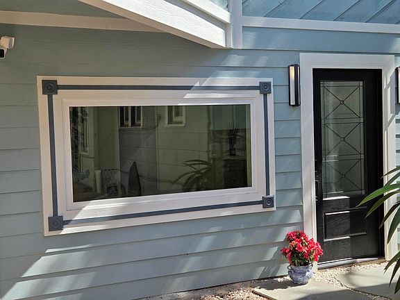 Landscaped outdoor spaceNew slate patioQuartzite countertopOpen concept livingEnsuite bathsOversize step in showerWood-like porcelain floor tile