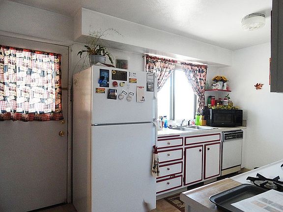 Cozy ranch style home offers low maintenance metal siding, mature trees & shrubs, large front window, spacious kitchen, open design, remodeled bath fixtures, carpet, storage sheds and alley access to back yard. Perfect starter home all on one level!