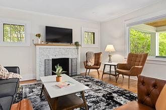 It has a charming front porch, full kitchen to accommodate cooking, smart TVs in every room, and washer/dryer in the unfinished basement. This little home is clean and comfortable.