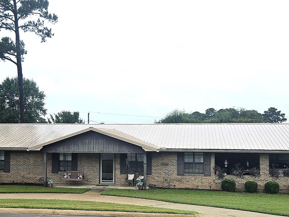 3BR/2BA All Brick home offers comfort, functionality, and thoughtful updates throughout. The kitchen features a convenient dining combo, pull-out drawers in the cabinets, a small bar/desk area, and tile flooring. the living room showcases beautiful custom built-in cabinets, newer carpet, and a cozy brick gas-log fireplace, creating a warm and inviting atmosphere. Bedrooms are generously sized, providing ample closet and storage space. The primary suite includes in own bathroom with a shower, while the first bathroom offers extra cabinetry. The laundry room adds additional convenience with a wash area and plentiful cabinet storage. Enjoy relaxing year-round in the covered and screened back patio, overlooking a large, landscaped backyard. Updates include a new metal roof (2017), new guttering, sheetrock replacement in living room area with fresh paint and trim, removal of popcorn ceilings, a new ceiling fan in the living room and updated kitchen light fixture. Home is conveniently located close to schools. Agent, please see showing remarks