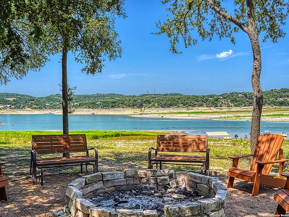 Peace and quiet will greet you on the shores of Medina Lake. This custom built home exudes quality craftsmanship and is where years of memories are sure to be made. Ample parking (some covered) on the 0.30 acre lot for guest and toys. The 2 bedroom, 2 bath home is a proven AirBNB winner! Smartly designed with a full bath, mounted TV, numerous ceiling fans, and storage room all within the confines of the downstairs covered patio. A recently added mechanical freight elevator will assist in moving luggage and coolers upstairs. You'll appreciate the oversized cedar railings on the stairs and upper patio. Once inside, eyes will be drawn upward to the cathedral ceilings and long gazing views out the windows. Bedrooms are split for privacy, yet connected for easy double sink and bathtub/shower access. When the lake level is high, the included floating dock will allow a boat and 2 PWCs to be docked just steps out the backdoor. When the lake is down, views still exist for miles and exploration of the lakebed is abundant.