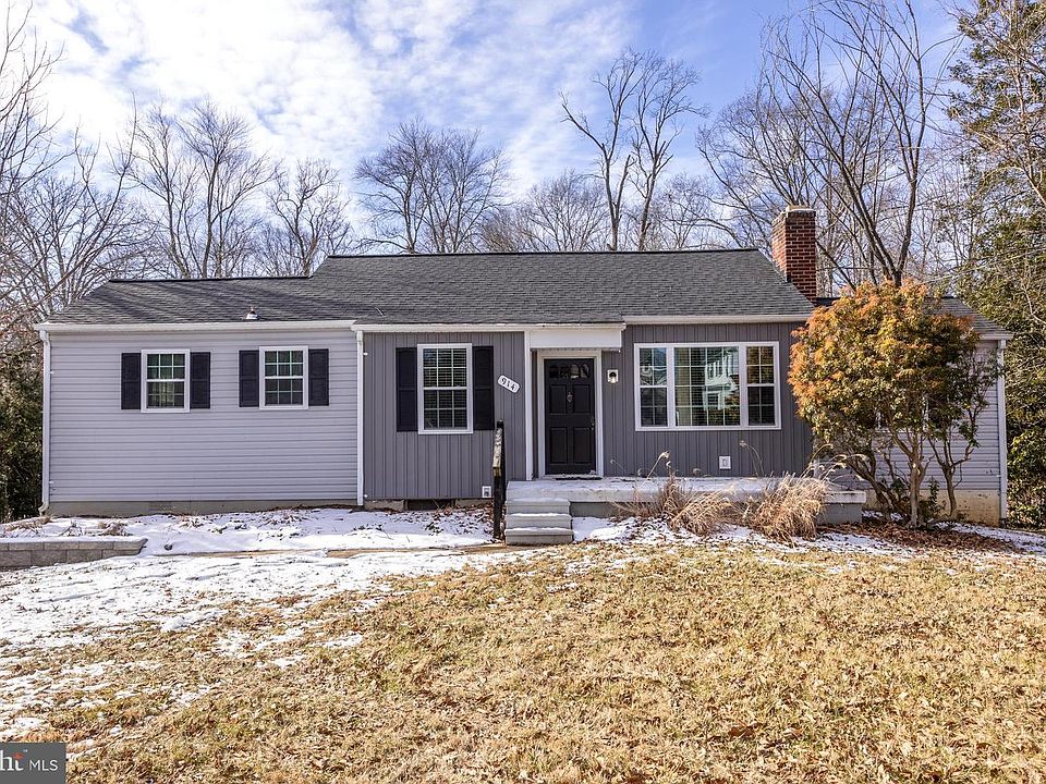 Three bedroom one bath rancher with nearly a half acre lot in Bel Air! Many recent updates include: a new HVAC, water heater, roof. Insulated vinyl siding and windows. Wood floors refinished. 250 amp electric service. Granite counters and stainless appliances in kitchen. Updated bathroom. Lower level sealed and painted with French drain and sump pump for peace of mind. All this plus an open living room with wood burning fireplace. Paved driveway leads to a large parking pad in the rear. Beautiful level lot with spacious lawn that backs to trees. No HOA here! This one floor living has some original hardwood flooring plus carpet in 3rd bedroom. A solid wide staircase leads to an unfinished basement with washer, dryer, a toilet and wash sink. Home has both a natural gas furnace as well as a recent heat pump system.