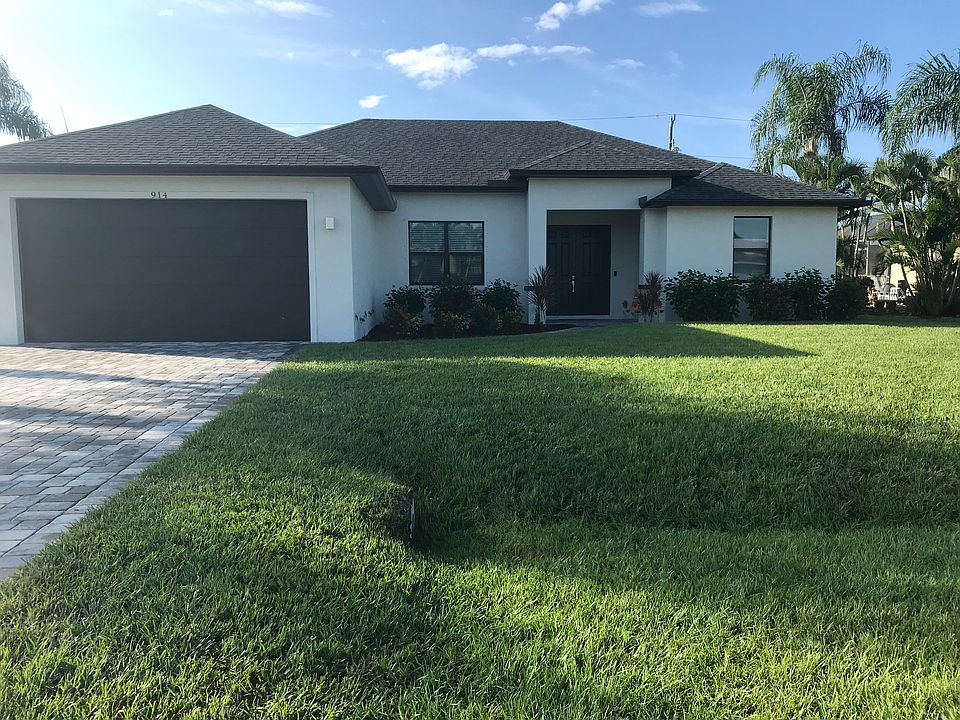 Beautiful Southwest Cape Coral semi custom home with southern exposure. Built in 2019, three bedroom two bath 1700 s/f. Custom designed kitchen with 4.5’ x 10’ Entertaining island with quartzite countertops, composite sink, soft close drawers and 42 inch cabinets with crown molding. GE profile appliances with induction cooktop and convection ovens. Porcelain floor tiles throughout, custom closet systems, full indoor laundry room with sink and upper cabinets, screened lanai, energy efficient LowE glass, irrigation system, dedicated generator line, extended 23 foot deep garage and much more. Qualifying assumable VA mortgage. Priced for quick sale. Furniture and hydro therapy tub available for sale.