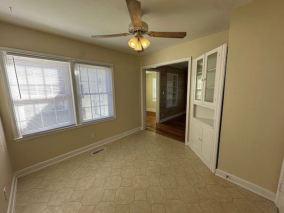 2BR/1BA Freshly painted and featuring beautiful hardwood floors, this cozy home offers a dedicated dining room with a corner hutch and a galley kitchen equipped with a refrigerator and stove. Enjoy extra space with an enclosed side porch/bonus room complete with built-in shelves, plus a back porch with washer/dryer hookups. A backyard shed provides additional storage. Central electric heat and air. Please note: The living room fireplace is not for use. No pets. No EIC.