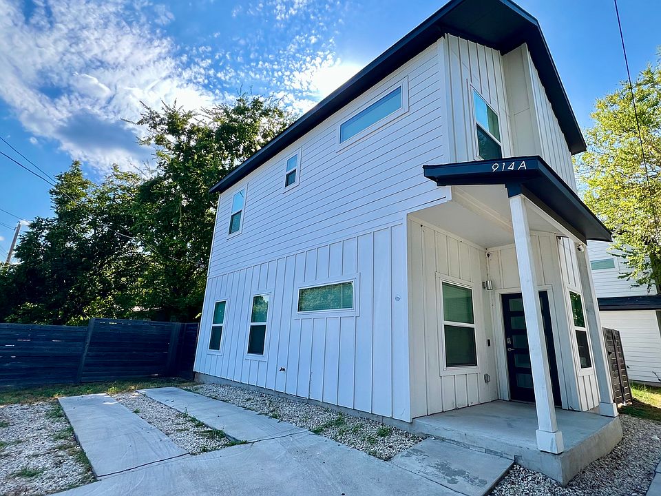 $250 off first months rent! Built in 2021 Centrally located off East Riverside in the Montopolis area. 2br, 2.5 ba. Open kitchen with Silestone counters and all SS appliances. Two bedroom suites upstairs with their own full baths with walk-in showers and walk-in closets. Large private backyard with covered porch. Private driveway and parking. RING Doorbell and security camera and lights.