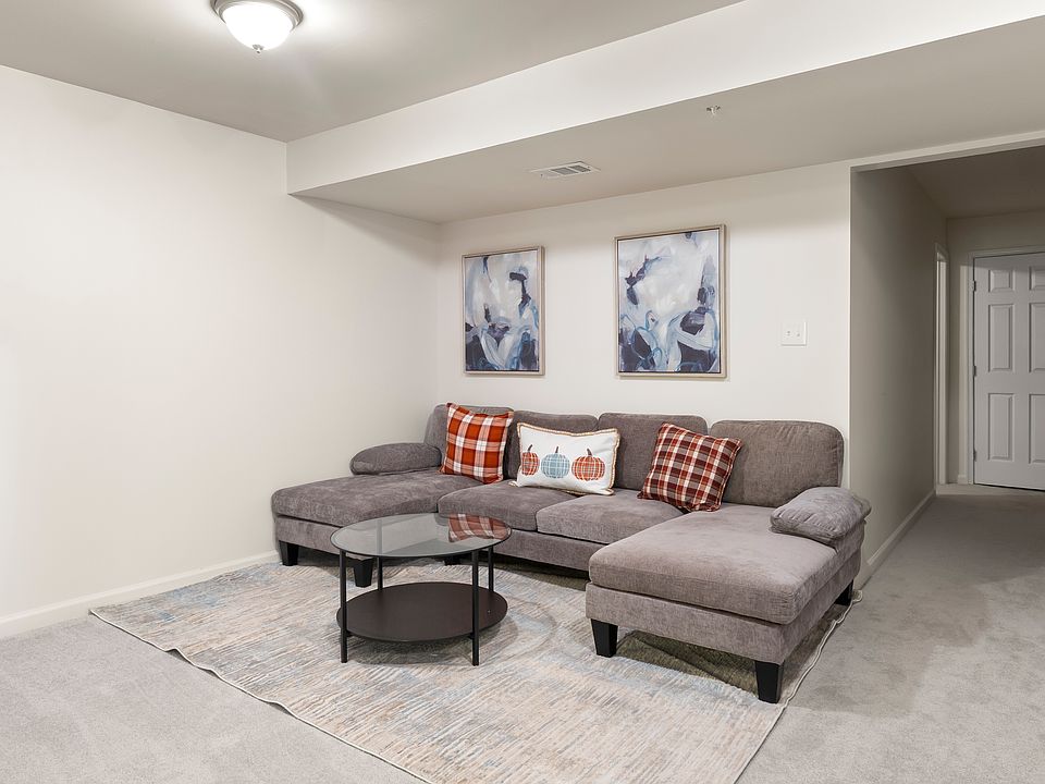 The basement apartment offers a private, comfortable setup ideal for a single occupant. Inside, you'll find a cozy living area with hardwood floors, a full kitchen equipped with modern appliances, a spacious bedroom with ample storage, and a private bathroom. The layout provides plenty of room to relax or work from home.