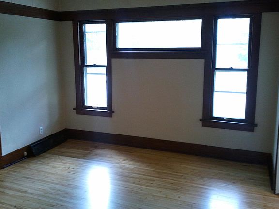 Large 1260 sq ft 3 BR 1 bath first floor apartment with garage space and washer dryer hookups available at $50/mo, formal dining room, 3-season porch. Nice woodwork and hardwood floors. 1 block to desirable Adams Elementary school, near downtown and Milton Ave. shopping/groceries/busline. Landlord pays water and trash, tenant does snow removal. Spacious and comfortable! No pets, no smoking