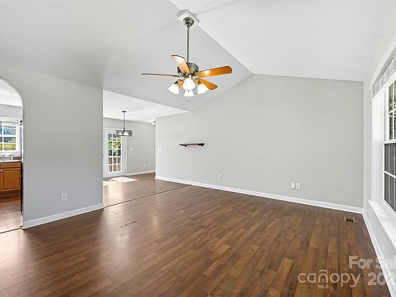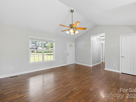Welcome to this inviting 3-bedroom, 2-bathroom home tucked away in Kings Mountain, offering the perfect balance of privacy and convenience. Situated at the end of a quiet dead-end road, this property allows you to enjoy peace and seclusion while remaining just minutes from all the shopping, dining, parks, and community events that make Kings Mountain such a wonderful place to live. Step inside and you’ll immediately notice the bright and spacious living room, designed with vaulted ceilings that create a sense of openness and flow. The open floor plan seamlessly connects the living space to the dining area and kitchen, making it an ideal setup for entertaining or enjoying everyday living. The kitchen has stainless steel appliances, plenty of cabinetry, and ample counter space, perfect for preparing meals while still being part of the conversation.
