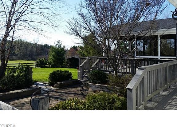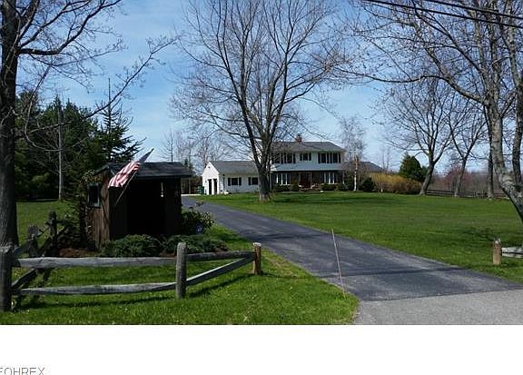 Garrison Colonial Home & Mini-farm conveniently located just minutes from Chardon Square. This is one of the best maintained homes and properties on the market. The exceptional condition of the home, grounds & out-buildings will be a treat for the next owners. Fulfill your wish to be in the country and have a home where you can raise animals and pets, ride your horses & yet be able to have a minimal investment, not be property poor. The home has been decorated with the influence of the Arts and Craft style with Oak trim & wood window shutters. The Kitchen offers an eat-in table area and still offers a larger Dining Room for Family feasts. During milder weather there is a screened, timbered porch with Composite decking of 14x15 to dine out/in. The overall deck is 22x25. Or, enjoy the stone patio of 12x17, plus there is a river stone secluded firepit area nestled in the pines. Back inside to the Master Suite with Gas Fireplace, Glamour Bath with jetted tub and separate shower & a huge walk-in closet. A private deck is accessed through French doors. On the 2nd Floor, 4 large Bedrooms, one has its own Bath then a Second Full Bath off the main hallway. The Basement, with brick floor in the Game room has two exits to the outside, a Boiler room, Utility & Exercise Rm. & former Home Office. Also whole house generator. The Laundry/Mud room & Half Bath lead to the 2-car heated garage or to the back property & barns. Barns have Electric, Water, Stalls & Plenty of equip. storage.